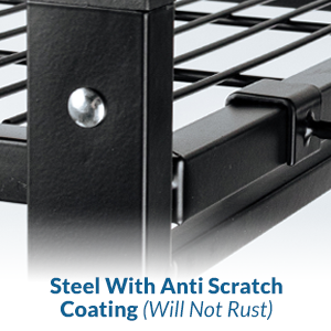 The gym storage rack for home gym is made from steel, with a black coating that prevents damage and scratches.