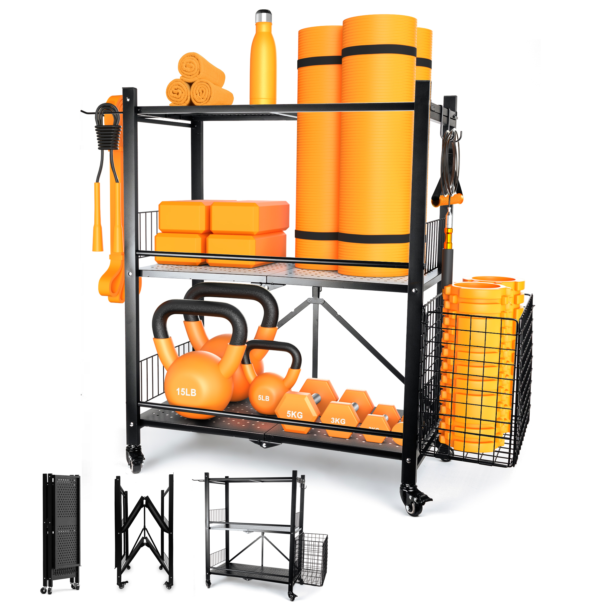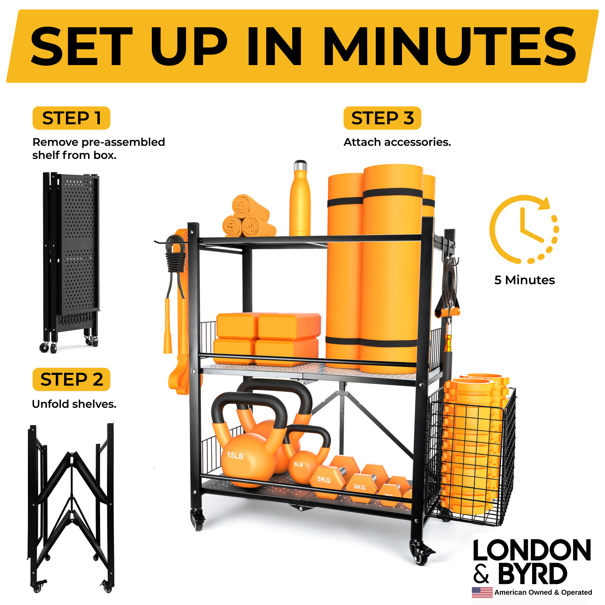 Organize your Home Gym Equipment with Ease - Our folding / collapsible gym rack comes 90% assembled, saving you time and frustration. Simplify your gym equipment storage and organization. Ideal weight storage rack for home gym.